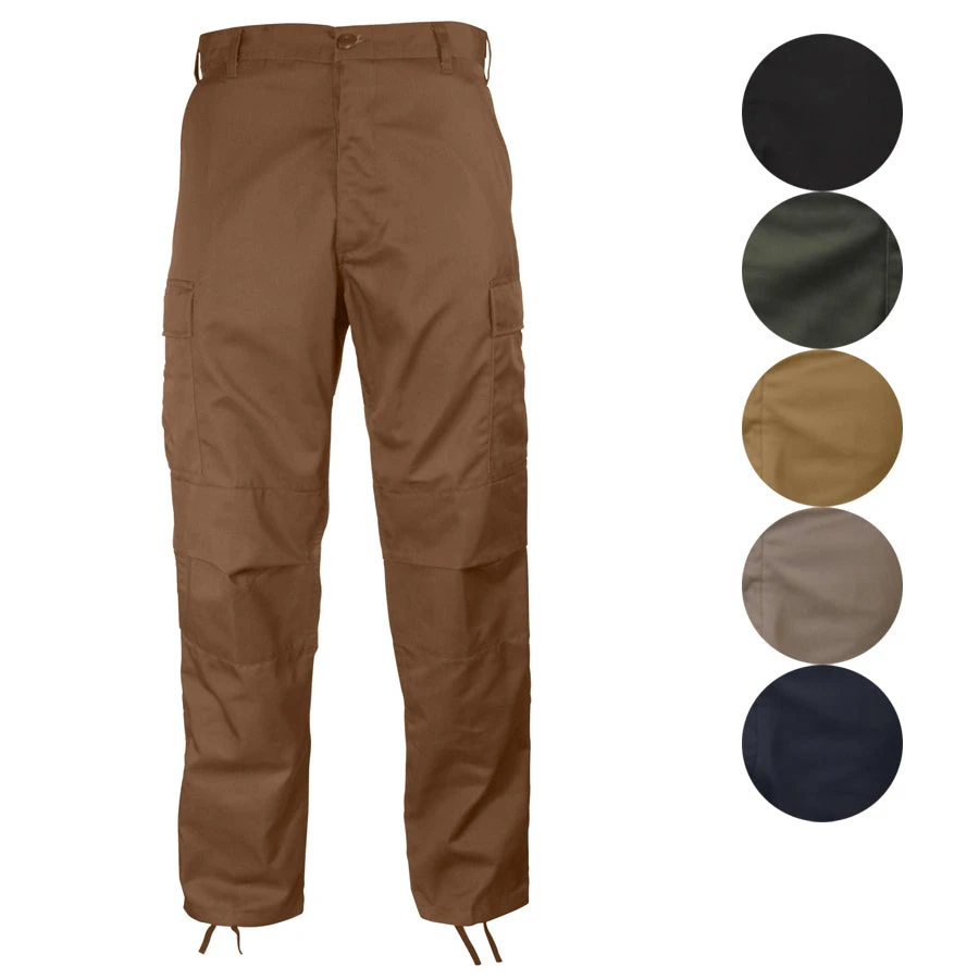 Rothco’s BDU fatigue pants include 6 utility pockets (2 button down back pockets, 2 front slash pockets, and 2 cargo pockets), the cargo pockets allow for additional storage of essential gear and everyday carry. Additional features of the BDU Fatigue Pants include adjustable waist tabs for a secure fit, button fly, drawstring bottoms. The BDU pants are available in sizes up to 8 XL in regular, long and short.