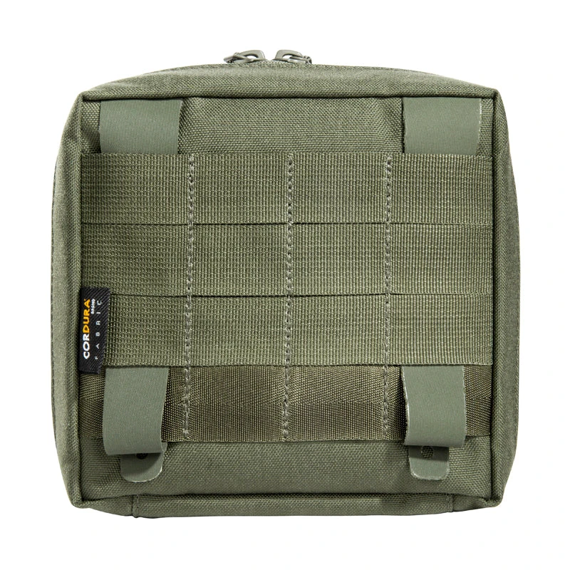 Accessory pouch with a large opening and the MOLLE reverse system. The inside features a MOLLE hook-and-loop, a mesh pocket, and elastic loops.