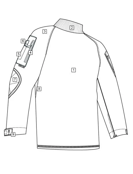 - Loop on sleeve pockets for attaching name, rank and flag patches