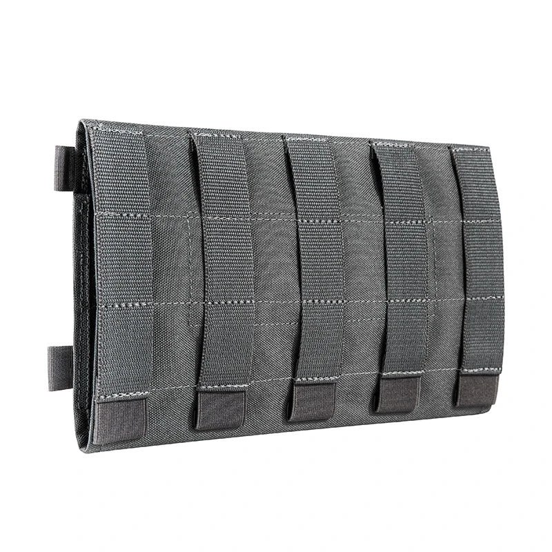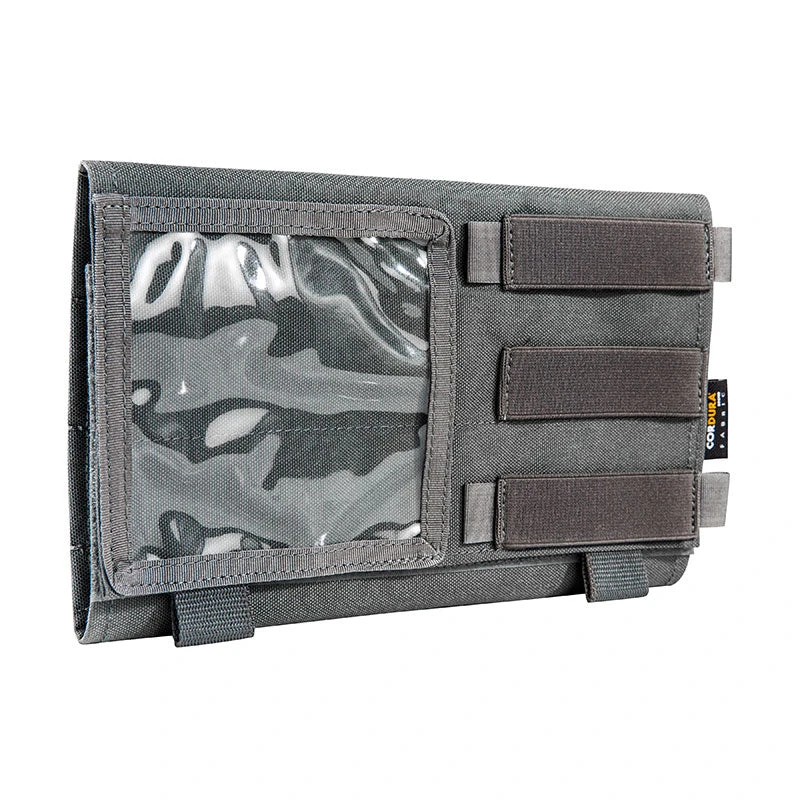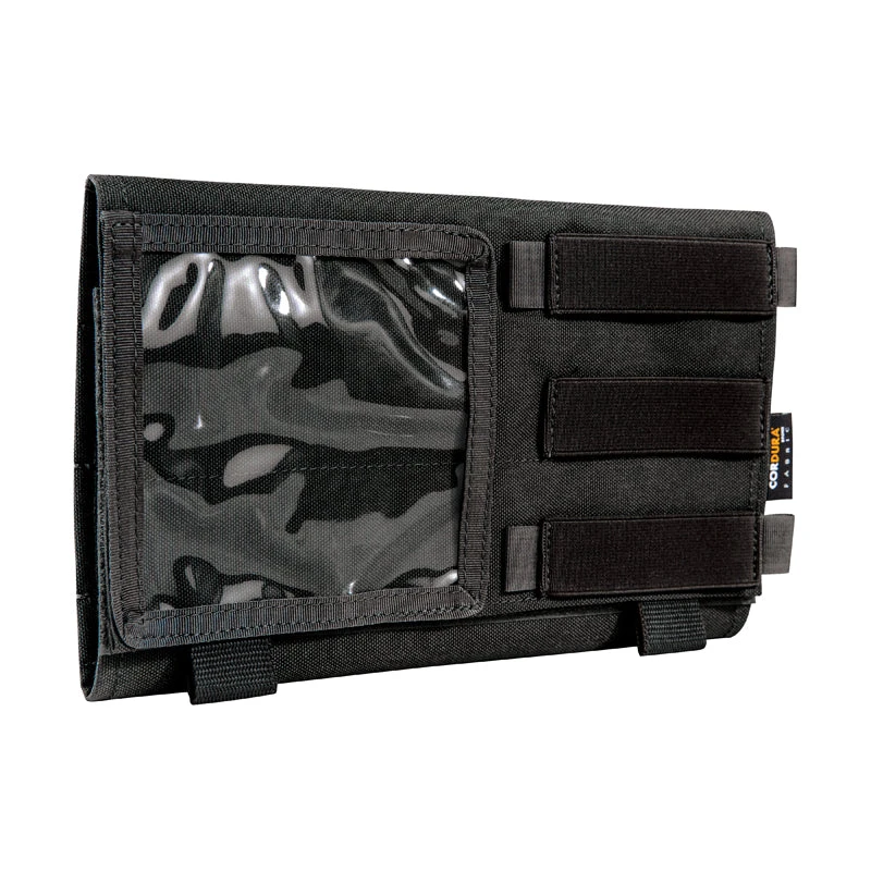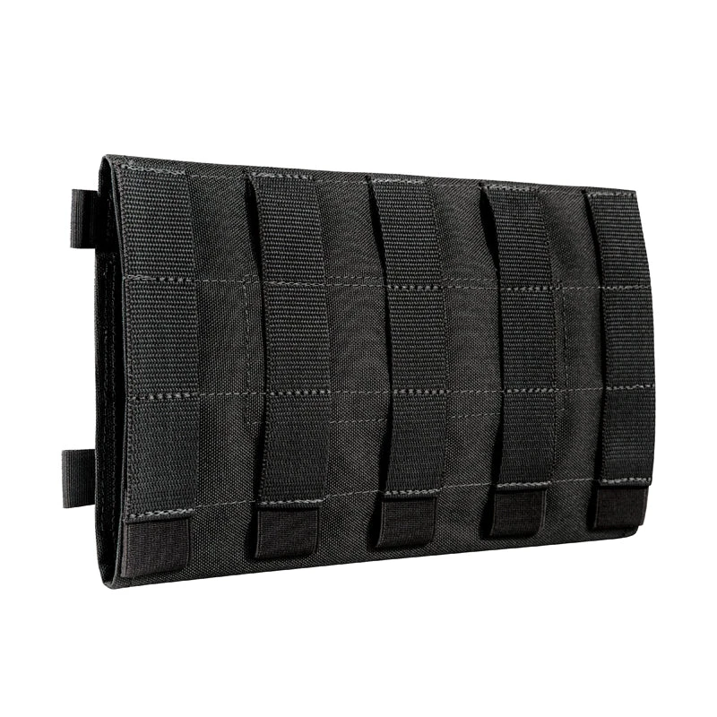 Length-adjustable MOLLE panel that wraps around and attaches to vehicle sun visors. Can hold various equipment and tools. Part of Tasmanian Tiger’s TacVec series.