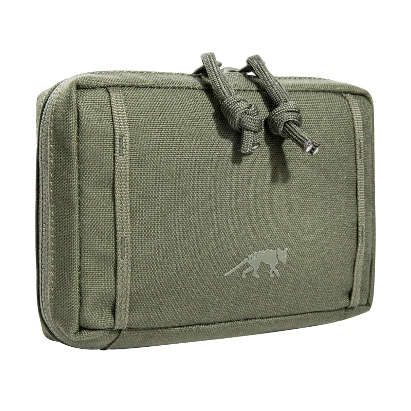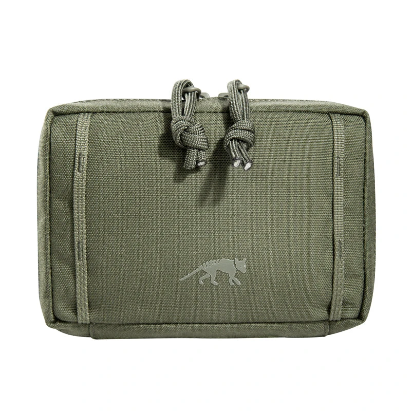 Accessory pouch with a large opening and the MOLLE reverse system. The inside features are a mesh pocket and elastic loops.