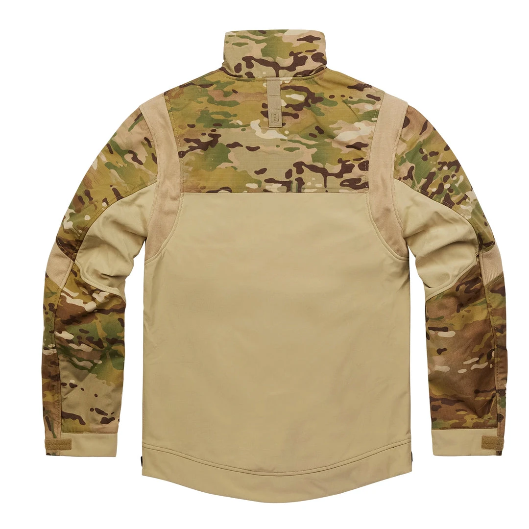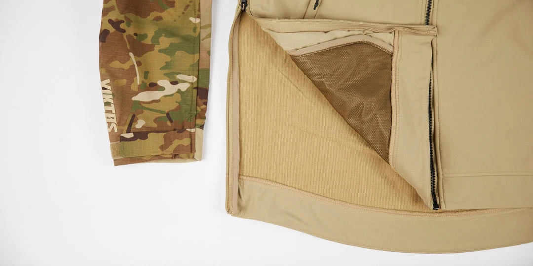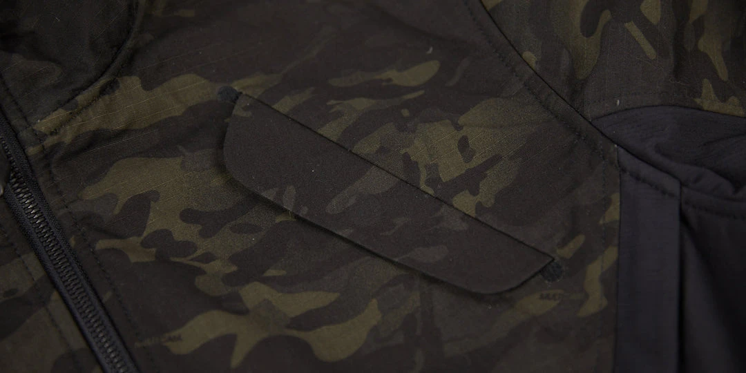 Built to take your tactical needs into cold weather, the Combonova softshell jacket is a unique blend of combat shirt with an insulated men’s jacket. The chassis is constructed from a water-resistant softshell material for warmth and weather protection. The upper torso features complete Multicam nIR overlays providing both camo concealment and durability. Upper chest pockets feature magnetic closures and are positioned for easy access when worn under a plate carrier. Integrated stretch shoulders and elbows panels allow for unrestricted movement into a modern combat shooter’s stance. Tactically equipped, the Combonova features Gunvent sidearm zippers for instant access to waist-holstered pistols while an interior communication cord routing provides lo-vis cable management.