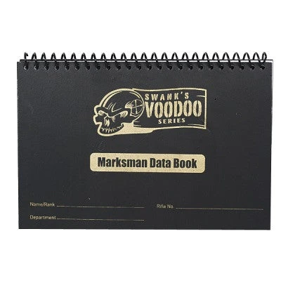 The Voodoo Tactical Voodoo Marksman Data Book is a hardcover spiral data book designed for the experienced shooter or sniper. Crammed with important information, tips and charts with areas for your notes and personal shooting records.