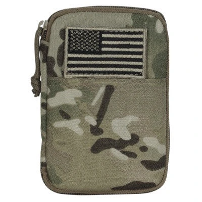 The Voodoo Tactical Universal Compatible BDU Wallet holds I.D., pens, pencils, flashlight, electronics, medical supplies, passport, etc. Universal straps for easy attachment to belt or pack. 9 separate pockets/slots, external mesh pocket and two inside lanyards with clips. Full zip with pull and a removable hook-n-loop subdued U.S.A. flag patch.