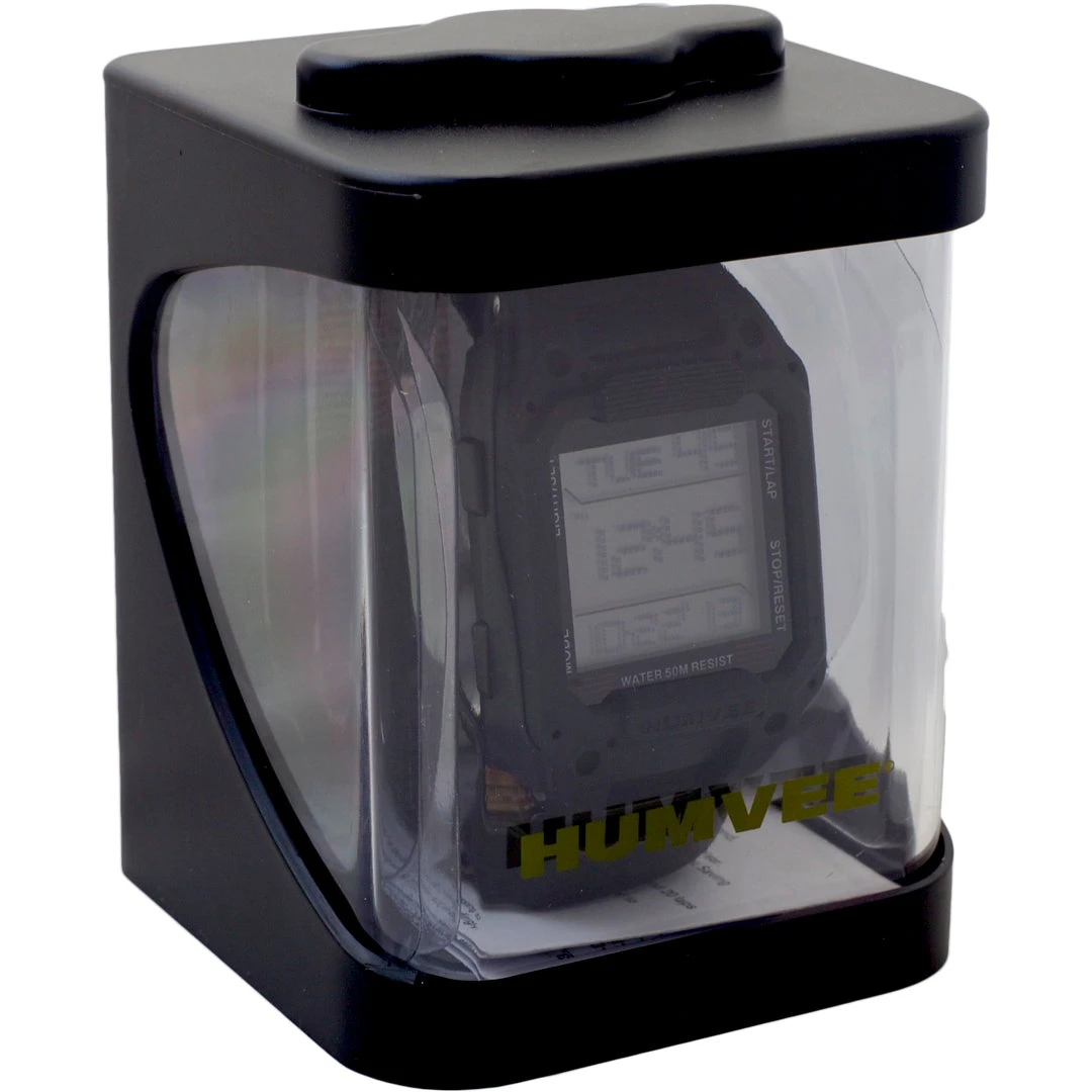 The Humvee HMV-W-RCN-BLK Recon Rectangular Black Digital Face watch comes with a 1-year limited warranty. Humvee watches are really one of a kind and guaranteed to stand out.