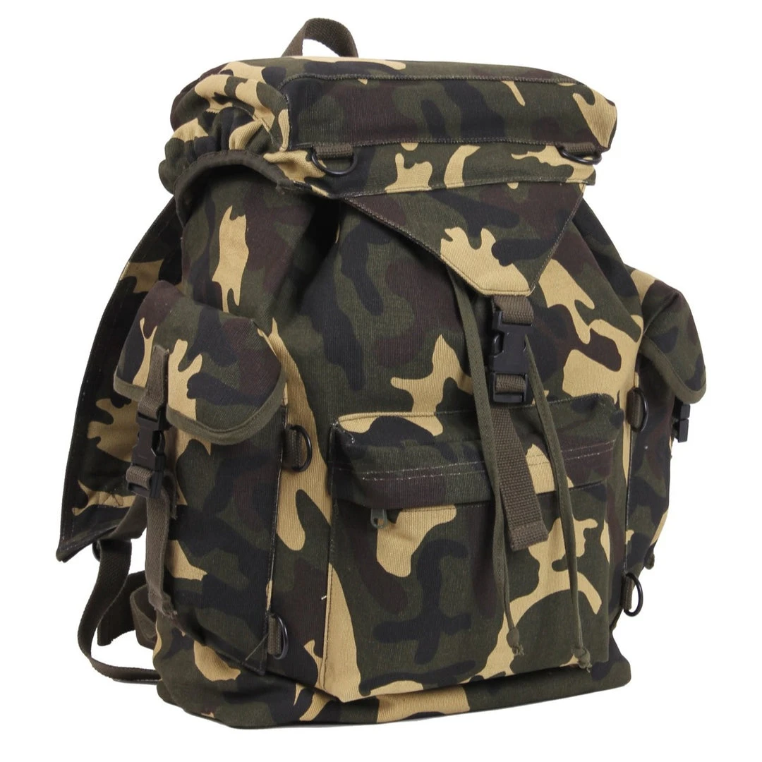 Rothco’s Canvas Outdoorsman Rucksack is the perfect canvas pack for the great outdoors. The Rucksack is constructed with a durable heavyweight cotton canvas and features one large main compartment with two side pockets and a pocketed lid for additional storage. The adjustable heavy canvas padded shoulder straps and two inch waist belt aid in comfort and weight distribution when carrying a heavy bag. Rothco’s Outdoorsman Rucksack makes for a great bug out bag or day-pack for camping.