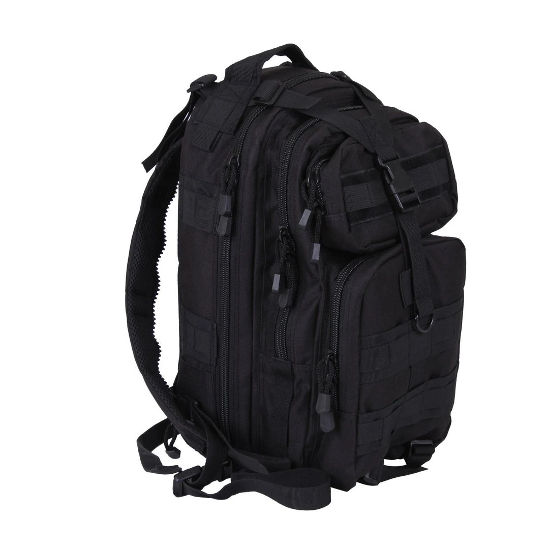 Rothco’s Convertible Medium Transport Pack adds a twist to our classic Medium Transport Pack by allowing you to zip the 2″ backpack straps together and unhook either side, turning it into an ambidextrous single sling pack. The tactical sling pack includes many of the same, well-known features such as MOLLE and hydration compatibility, heavy duty zippers, padded back with breathable mesh, and top carry handle. Our convertible backpack measures 17″ x 10″ x 9″ with one large main compartment and three additional pockets and storage compartments which are lined to help repel water. There are also zippered pockets to help store webbing slack when the pack has been converted to sling mode. Padded, adjustable shoulder straps make this convertible tactical pack comfortable for all day wear.